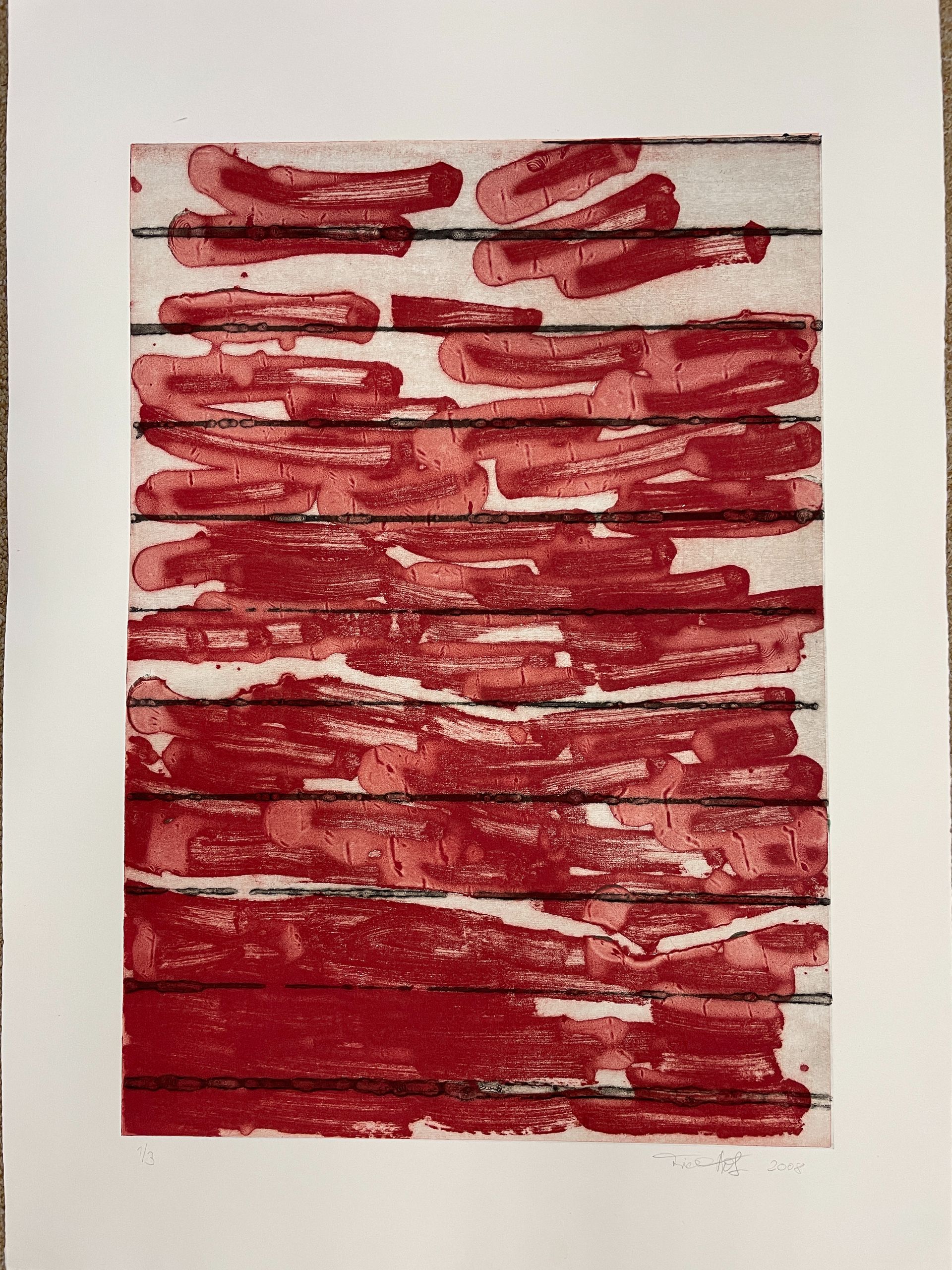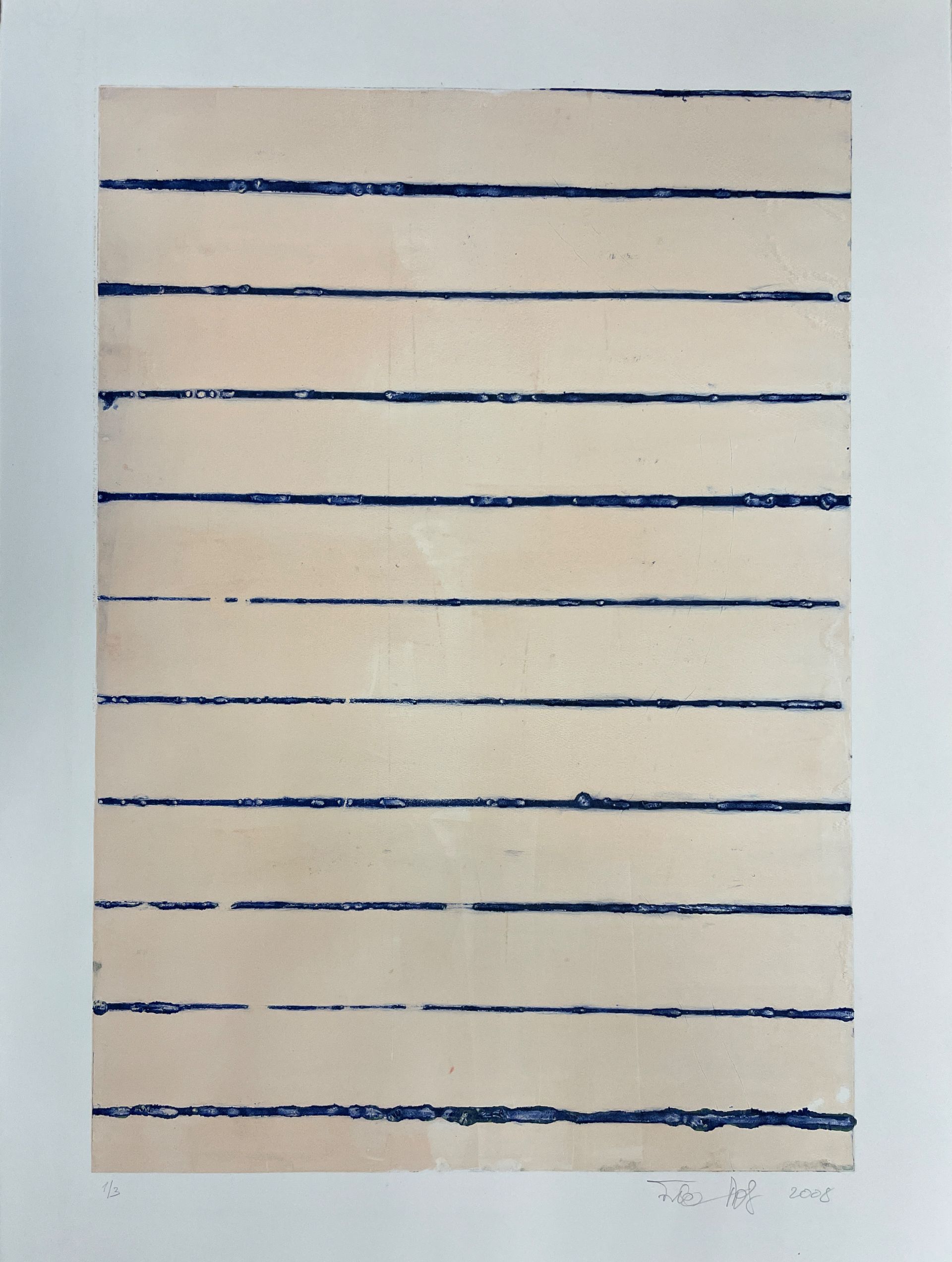 Farbe ist an die Form gefesselt. Unterschiedlicher Herkunft sind die Elemente, die Friedrich Pröls zu dieser Einheit verbindet. Der Blick durchs vergitterte Fenster eines ehemaligen Gefängnisses, in welchem Gebäude er einen Radierkurs besuchte, geht in seine Bilder ebenso ein wie der Rhythmus der Musik, die er beim Malen hört. Sich wiederholende Formen strukturieren den Fluss der Farbe. Thematisch deutet Friedrich Pröls seine Kompositionen mit den Zeilen von Gedichten. Die Worte „I inhale great draughts of space“ aus dem „Song of the Open Road“ von Walt Whitman, die einer Serie von Gemälden den Titel geben, beschwören den Freiheitsdrang der Männerabenteuer. Diese Erlebnisqualität wird Gemälden zugeordnet, die in verschiedenfarbigen Schichten aufgebaut sind und deren untere Lagen durch Verletzungen der oberen sichtbar werden. Aus demselben Poem wie oben ist die Aussage „I believe that much unseen ist also here“, die hier auf das Transzendente ebenso wie auf die real vorhandenen tieferen Farbaufträge der so betitelten Gemälde zielt.